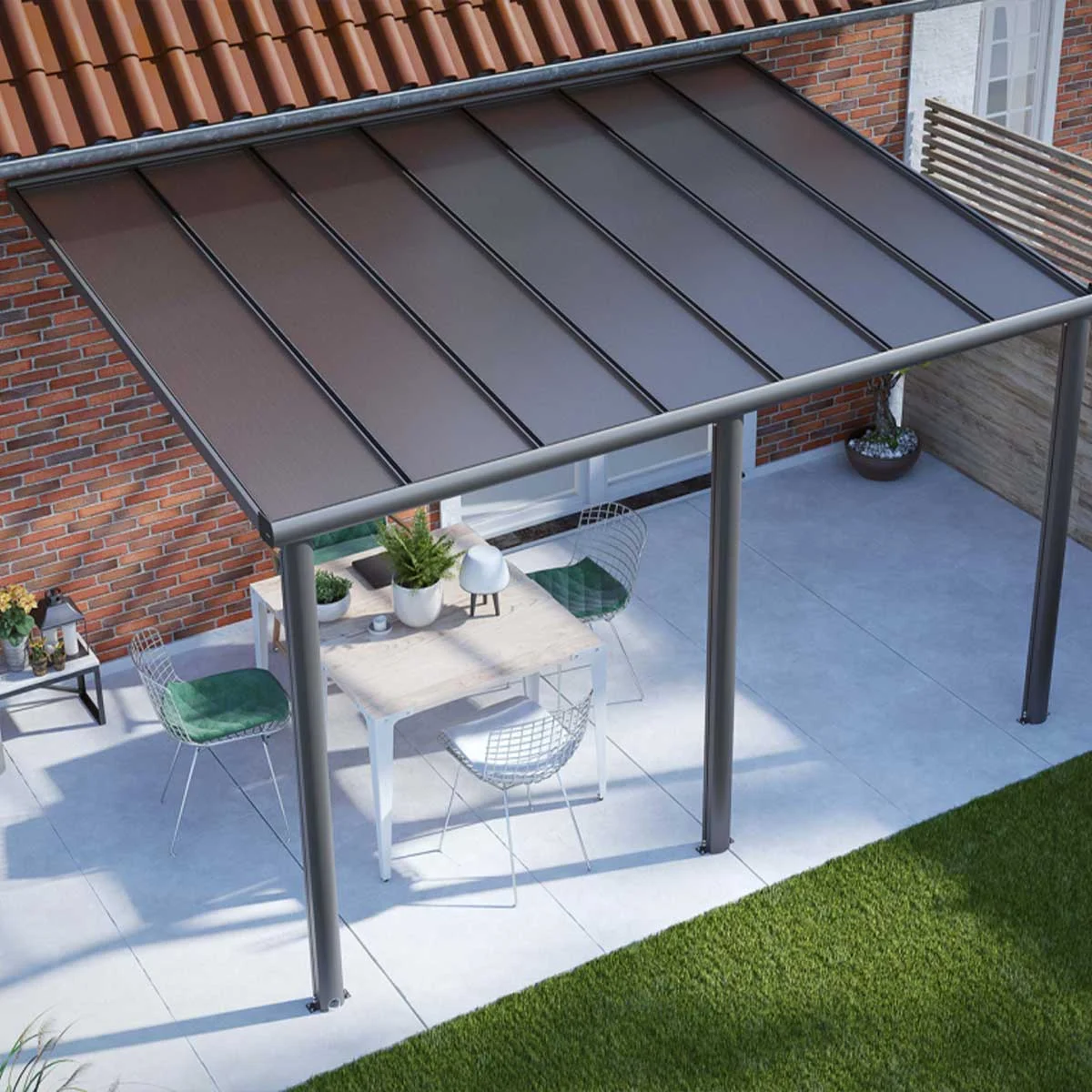 De Greenline-overkapping biedt een betaalbare oplossing met de bekende kwaliteit van Verasol. Het sterke, duurzame materiaal en het moderne design maken deze overkapping een perfecte keuze voor het creëren van een beschutte buitenruimte.