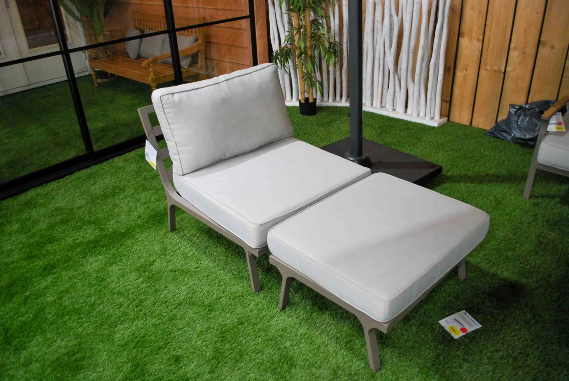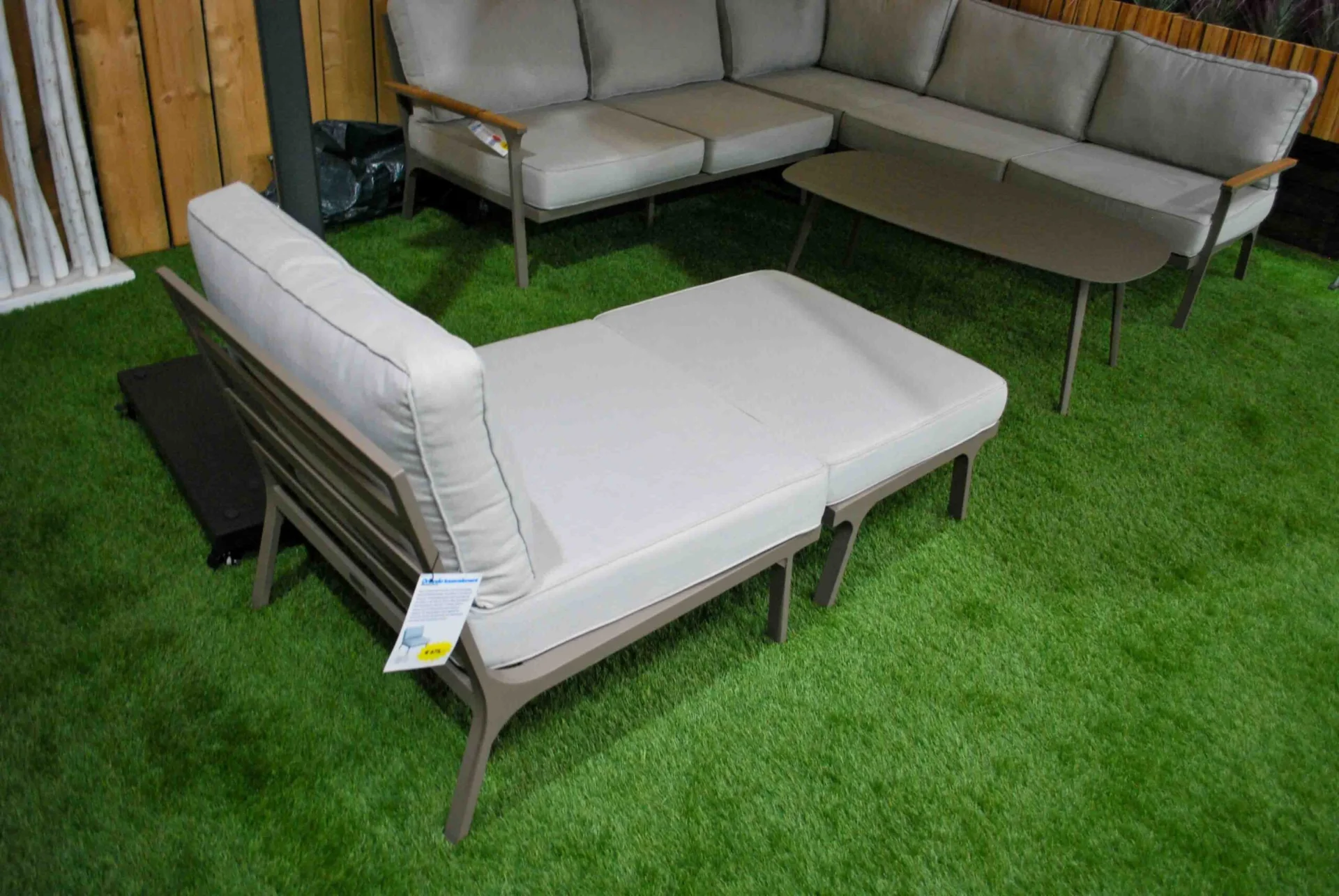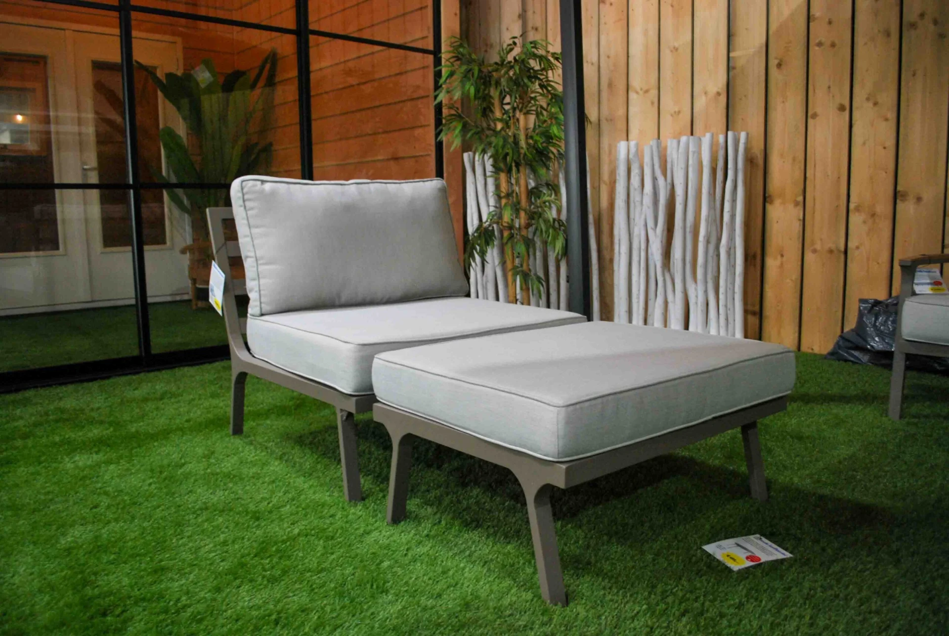 Het tussenelement is voorzien van olefin buitenstof kussens met fast dry foam vulling. Dit type foam is waterdoorlatend, schimmel- en rotvrij, perfect geschikt voor buitengebruik.